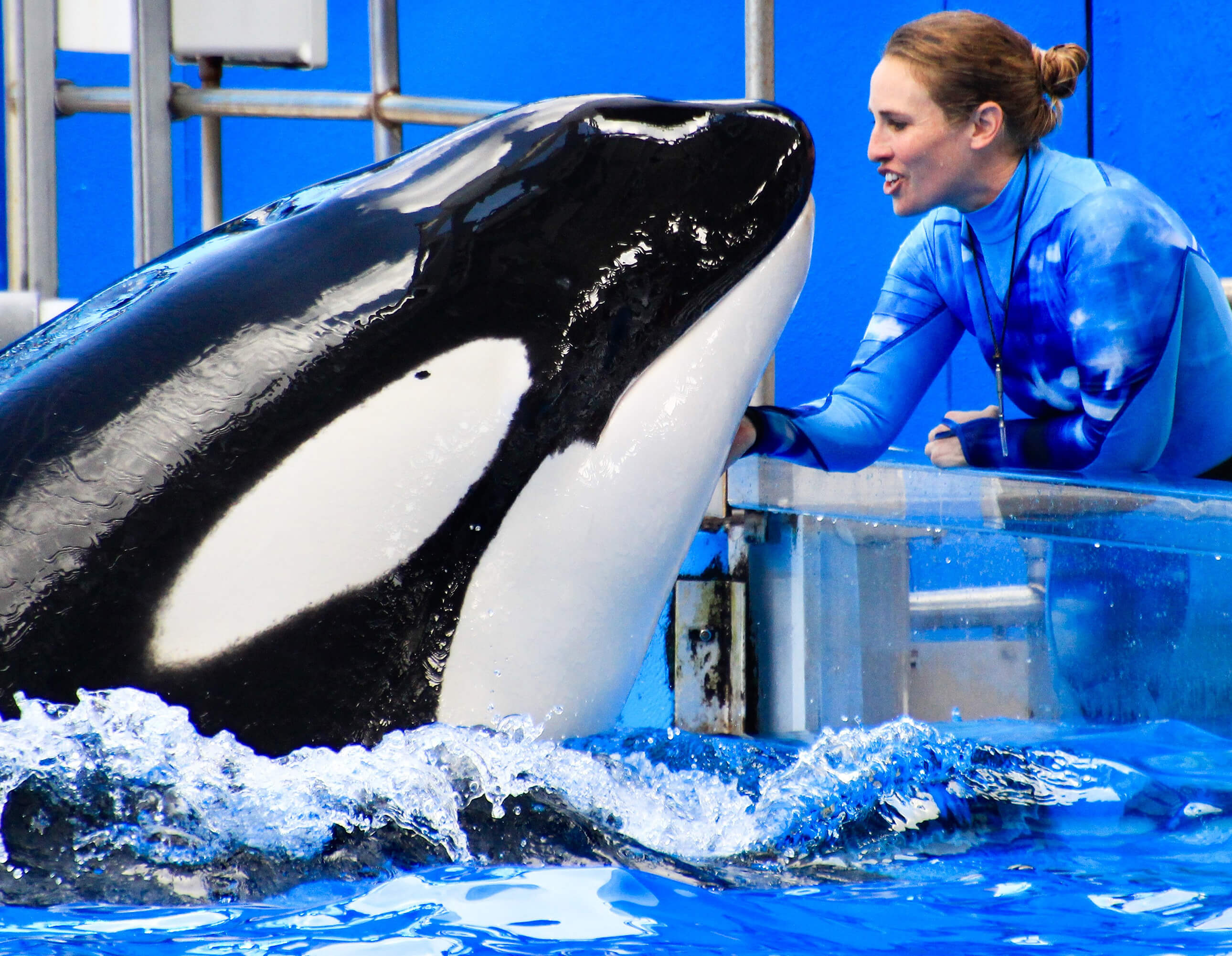 Megan MacKellar and Trua, a 14-year-old whale weighing nearly 6,000 pounds, have developed a bond interacting and learning from one another over the past five years. (Photo provided by Megan MacKellar)
